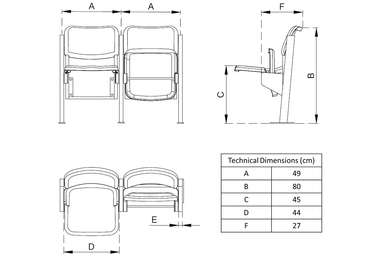 Azurithe 04 Product Information Equipped with a silent return system, this seat ensures minimal noise and a seamless match-day experience. Its structure is resistant to extreme weather and heavy use, making it suitable for stadiums in harsh climates.